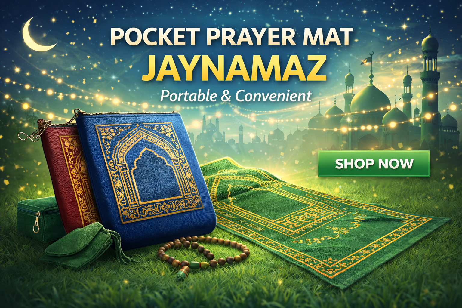 পকেট জায়নামাজ হালকা ও সহজে বহনযোগ্য একটি নামাজের জায়নামাজ, যা ভাঁজ করে পকেট বা ব্যাগে রাখা যায়। ভ্রমণ, অফিস বা বাইরে নামাজ আদায়ের জন্য এটি খুবই সুবিধাজনক। টেকসই ও পরিষ্কার রাখা সহজ হওয়ায় এটি নিয়মিত ব্যবহারের জন্য উপযুক্ত।